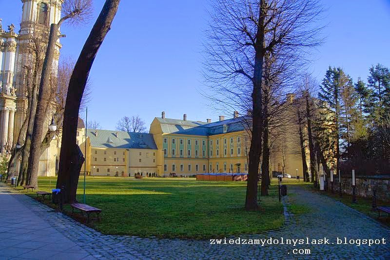 Obecny obiekt został wybudowany na początku XVIII wieku wraz z kościołem; było to za rządów opata Innocentego Fritscha, który był uważany za jednego z najlepszych gospodarzy opactwa. W czasie jego rządów został wybudowany klasztor i piękny, barokowy kościół, któremu w 1998 r. Jan Paweł II nadał tytuł Bazyliki Mniejszej. Klasztor miał być w myśl pierwotnych zamierzeń dużo większym obiektem, ale z powodu pogarszających się stosunków między państwem a kościołem (w 1740 r. tereny te przejęło państwo Pruskie, a w 1810 r. dobra klasztorne uległy sekularyzacji) zostało wybudowane tylko skrzydło południowe i częściowo zachodnie, które jednak zostało wysadzone w powietrze przez pruskich saperów. Obecnie klasztor zasiedlony jest przez benedyktynki, które zostały przeniesione tu ze Lwowa.