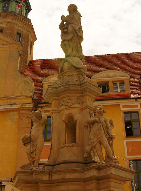 A przed zamkiem znajdziemy kolumnÄ™ maryjnÄ… z 1733 r.: